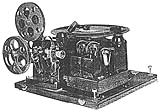 ![]() Paillards «Tonfilm» (1932): Ein Grammophon wurde elektronisch mit dem Bifilmprojektor (9,5-mm u. 16-mm) gekoppelt. Der Grammo-Motor diente als Master. Der Projektor als Salve. Ein Röhrenverstärker lieferte den Ton an den Lautsprecher. » Zur Übersicht |