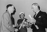 ![]() Grossprojektion 1959 in Bern: Herr Tettamanti, Direktor Pathé Genf (links), Frau Barth, Mitinhaberin Pathé Genf und Herr Blauer, Präsident 9,5-Filmclub Bern. » Zur Übersicht |